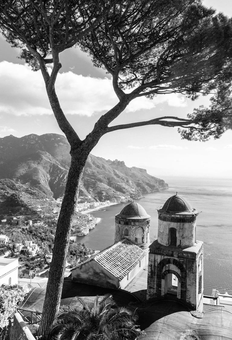 Ravello is not the drama of the Amalfi Coast. It is its pause. Gardens arranged with intention. Balconies framing distance like curated apertures. Silence that feels edited, not empty. Everything holds proportion.