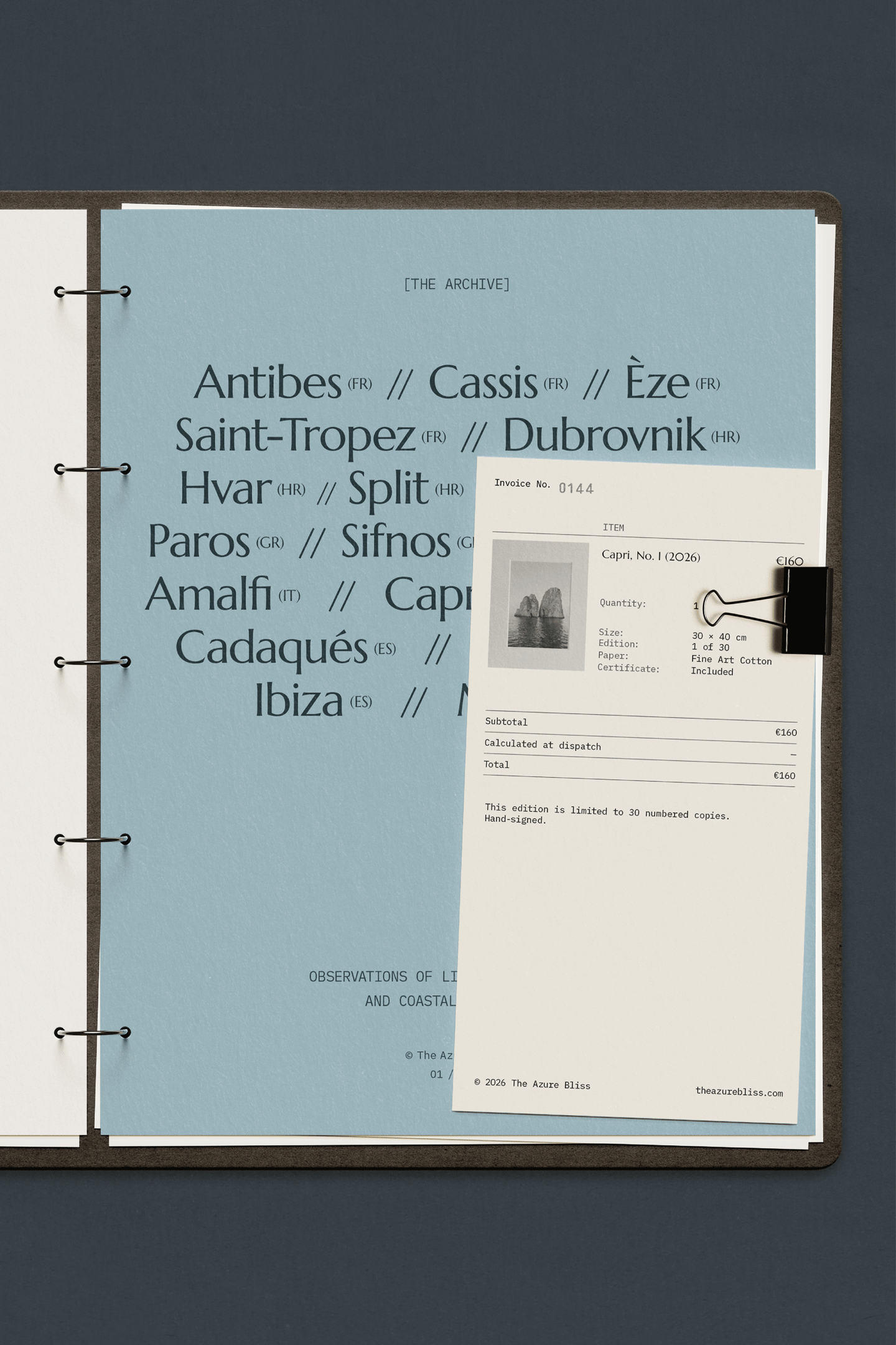 Selected photographs from the archive are released as limited edition fine art prints. Each edition is individually numbered and never reprinted once sold out.